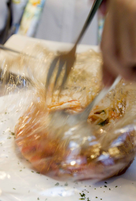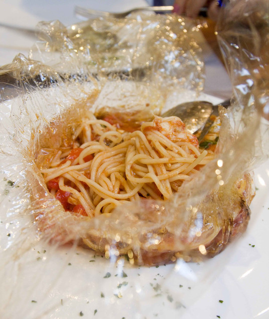 手工義大利麵搭配海鮮、螃蟹、蕃茄醬汁 - 又是花樣很多而味道不見得很好的一道菜。穿西裝的服務生桌邊服務有待加強,