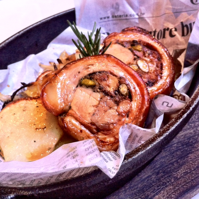 傳統義式烤乳豬 - 外面一圈肥肥的豬皮很好吃,不過內餡的調味感覺和這乳豬搭不上來,