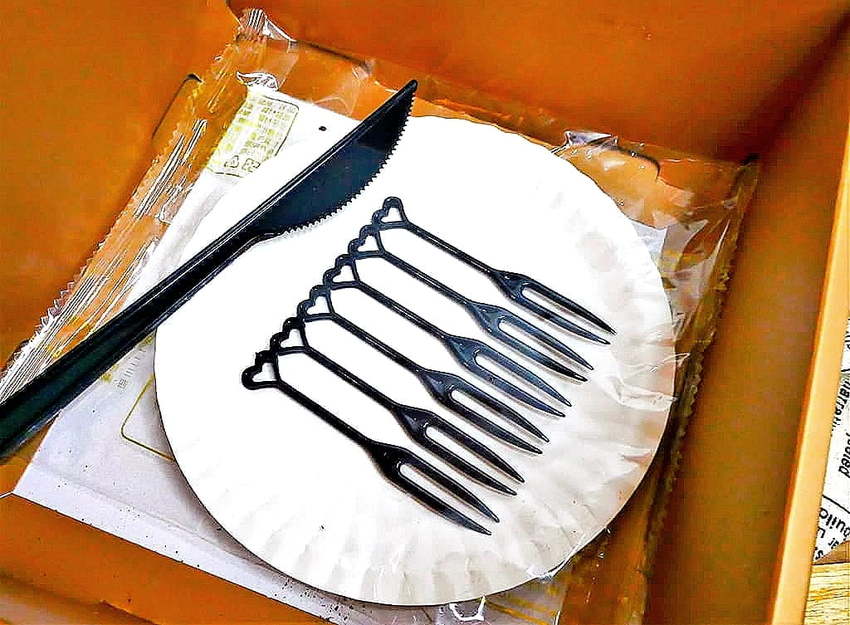 禮盒底層放置6入盤叉組&塑膠刀X1