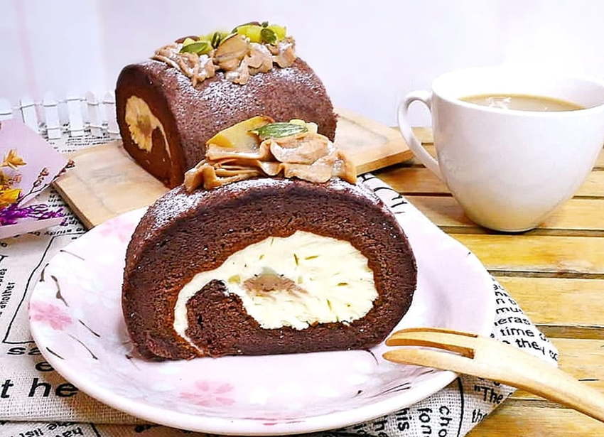 下午茶時光切一片咖啡捲來品嚐, 散發出浪漫與幸福甜美, 感覺十分愜意