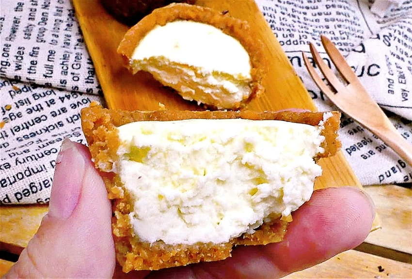 口感介於重乳酪與輕乳酪之間.鬆脆餅乾底,吃起來酥脆不乾澀,層次豐厚,口感絕妙無比