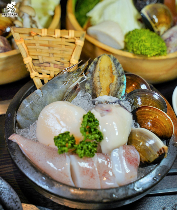 食材用料新鮮看的到,生食級日本大干貝、超大顆蛤蠣、大草蝦、小卷、鮑魚、廣島生蠔