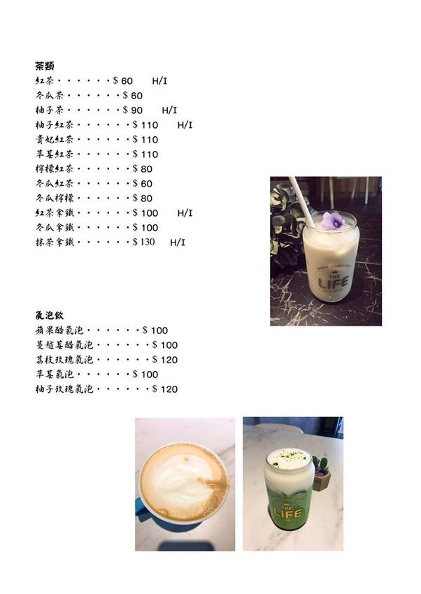 飲料的部分則有茶飲、咖啡、拿鐵、氣泡飲、果醋及歐蕾等品項。(完整menu價位可參閱官方連結)