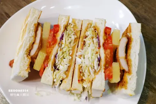 店家招牌品項,吐司因為烤過,所以吃起來帶點酥脆的口感,配料也十分豐富,有蛋、番茄、小黃瓜和美生菜,而雙層牛肉排帶有濃郁花生醬的香氣,吃完元氣滿滿。