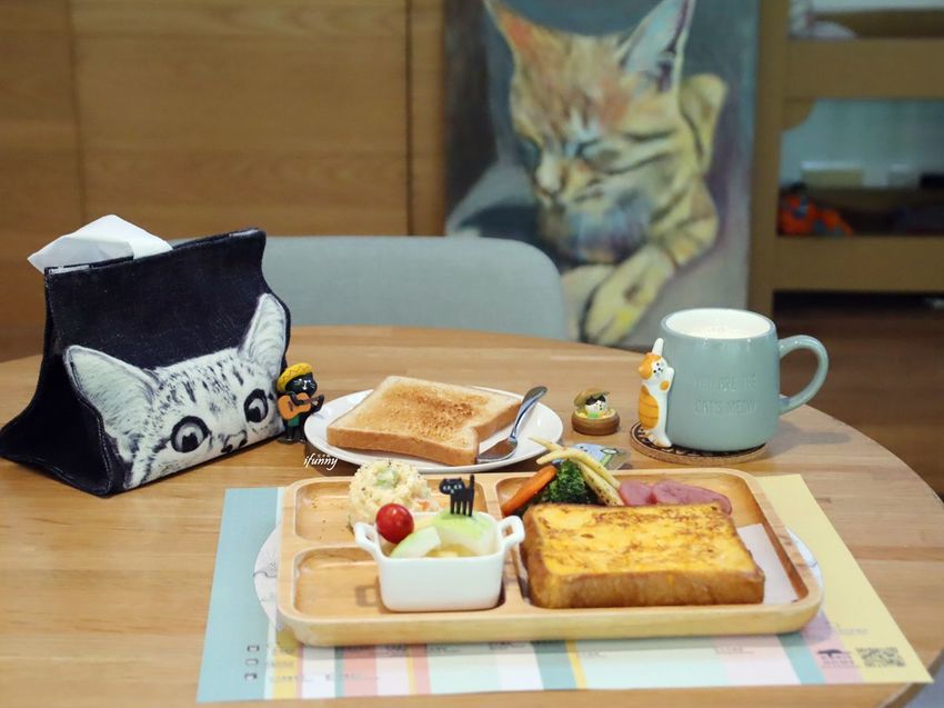 這天還有這隻萌貓陪艾方妮吃早餐呢!