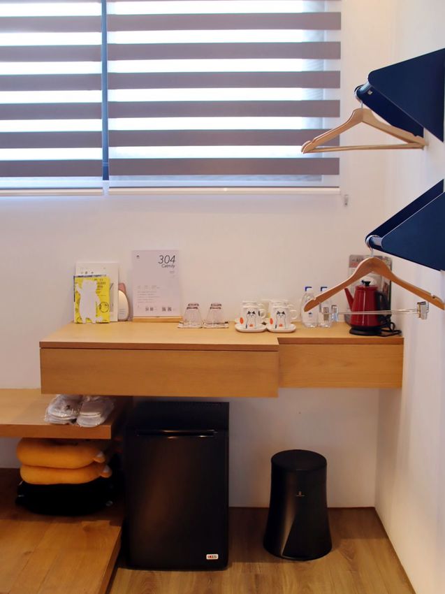 這天旅伴一葉之頁住在這間三樓的兩人房,牆面的淺綠色與藍色的被單,還有繽紛的貓咪抱枕,形成一個舒服的色彩。