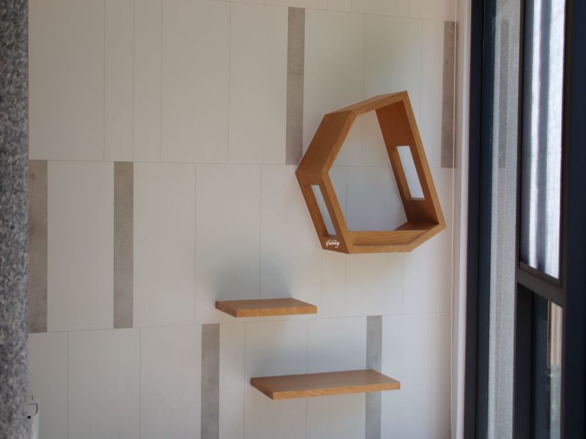 牆上特置的小跳台,讓自家貓咪也能一起感受渡假的樂趣。
