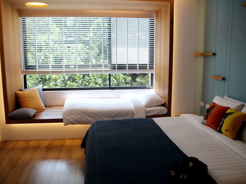 走到二樓相同的房型,就可以見到這個兩人房,臥榻可以恣意地享受自然光,還有微風輕拂過綠葉的聲音。