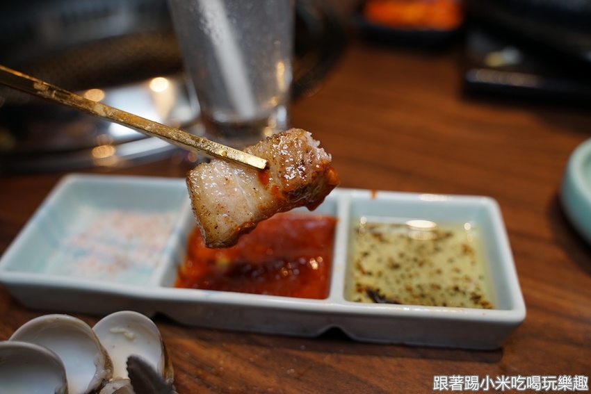 厚切國產豬五花烤起來算是蠻嫩及脆度口感,不過提醒店家等退冰後再出感覺會好一些(可能客人太多來不及退,有微凍結XD)