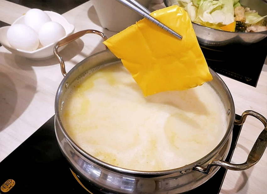 待煮滾後再放入起司片.湯頭更香更有層次風味