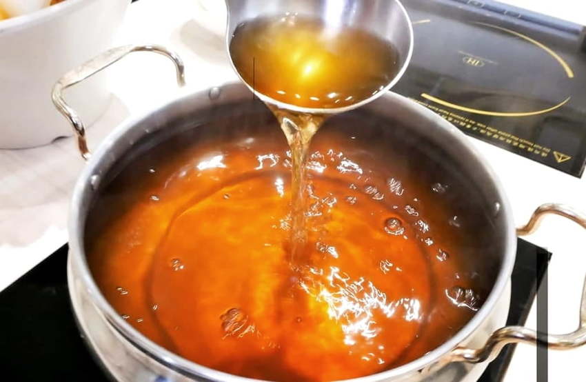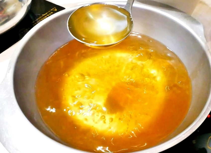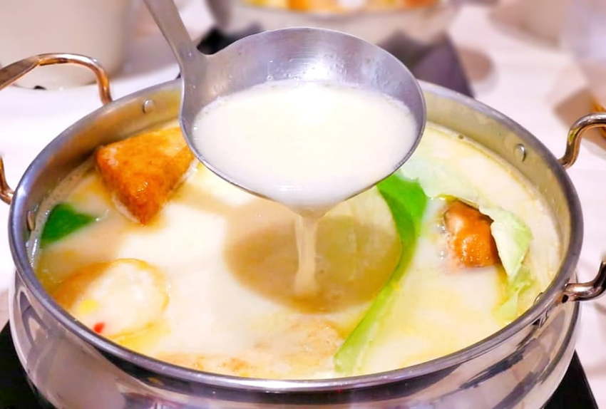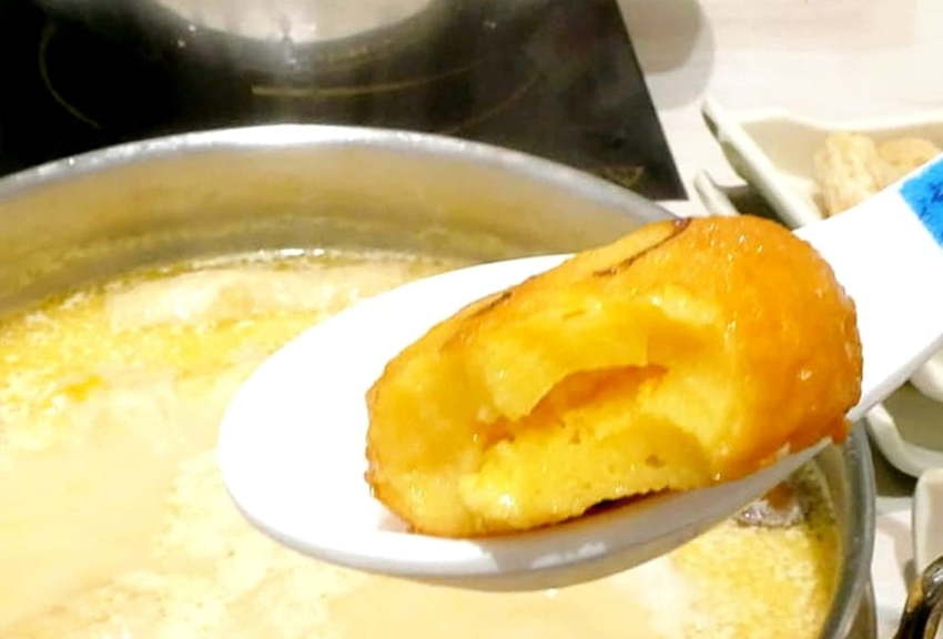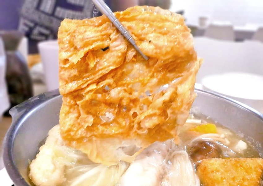 下鍋涮燙約5秒就能起鍋品嚐.豆腐皮吸附湯汁.入口後有為酥脆爆湯滋味.讓人吃了好過癮