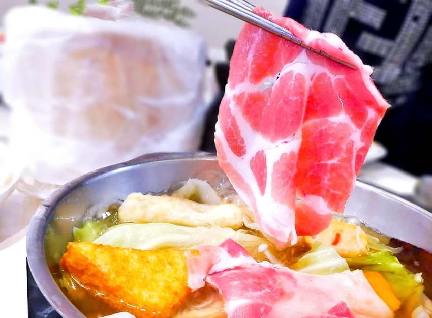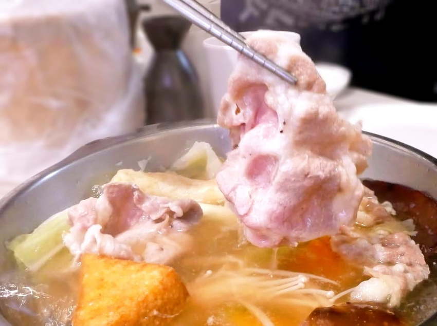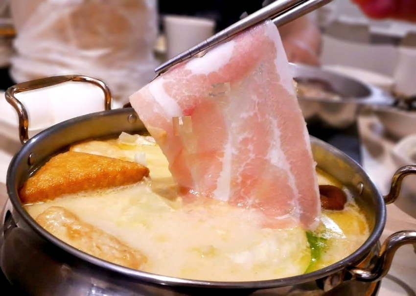 先夾一片上選培根牛肉來涮.肉片油脂分佈均勻口感不肥膩