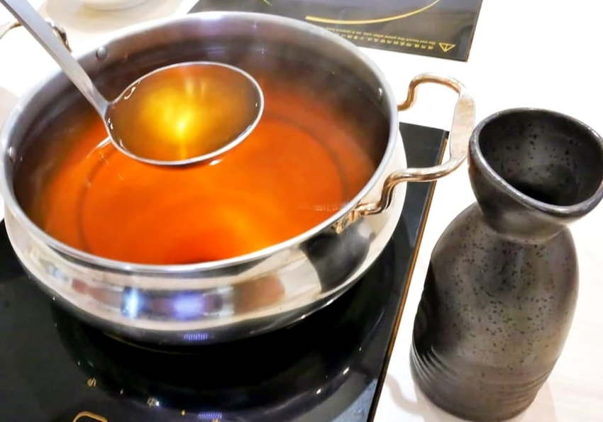 隨鍋會附上一壺壽喜燒醬汁.可依照個人喜好.若覺得味道不夠可加入湯頭