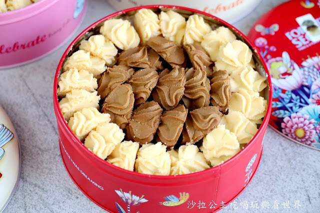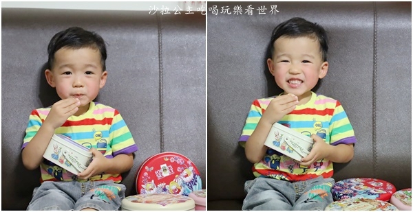 『愛威鐵盒餅乾』不僅好吃,外觀也很好拍,有著可愛的童趣,每款設計都不一樣,有多款鐵盒可以選擇,沙拉一看有紅色就從這個開始開箱