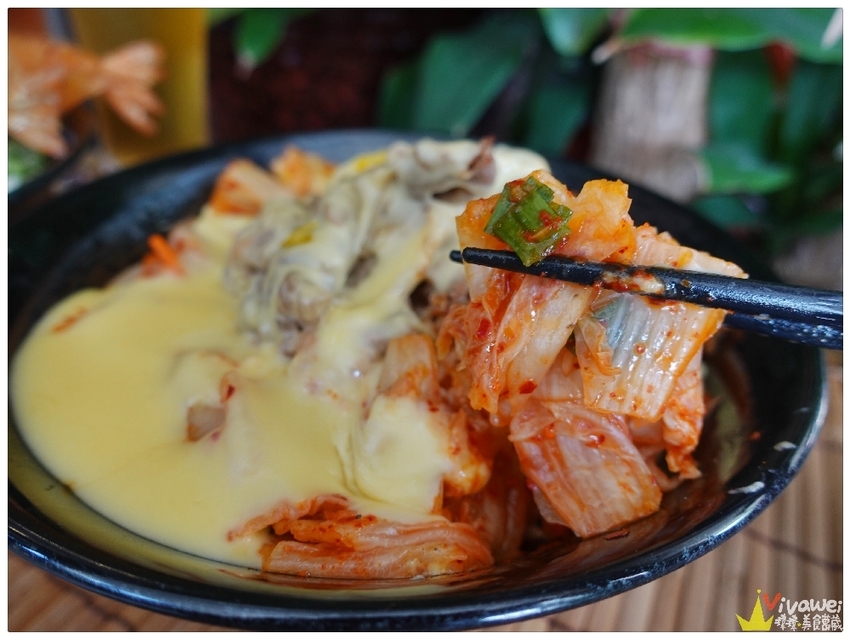 ▲超夯的火山起司熔岩丼創意十足!純牛奶熔岩起司醬是由起司搭配鮮奶所調製而成,奶香味很濃郁!建議要趁熱趕快淋下去!因為泡菜的量不少,搭配著起司醬一起吃口味還不錯!起司控絕對不能錯過!