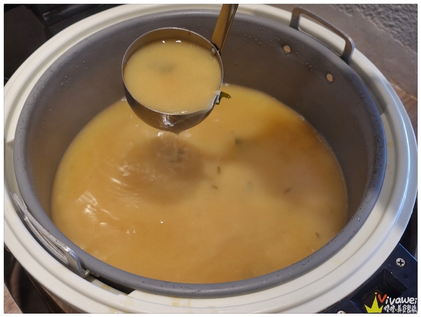 ▲內用味噌湯也是免費喝到飽,味噌湯有海帶芽、豆腐、柴魚片、青蔥!而金針菇不一定每天都有,需要在店家當天搭配好百菇丼飯的用量後,有剩下的才會加入湯品中。