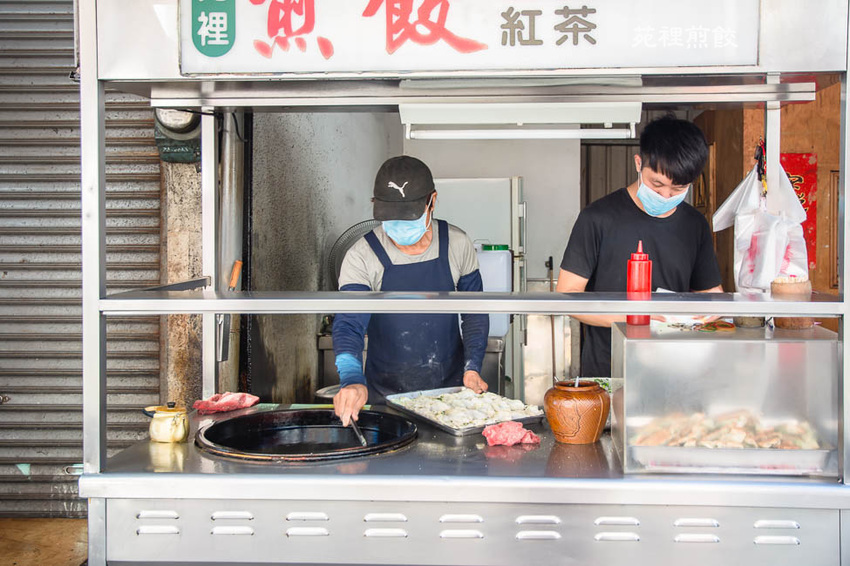 苑裡煎餃是現包現煎,需要一些時間等待,也因為是老闆現包現煎的,煎餃的形狀就會不一致,但這不影響它美味的程度,煎好的煎餃外表看起來酥酥脆脆的,