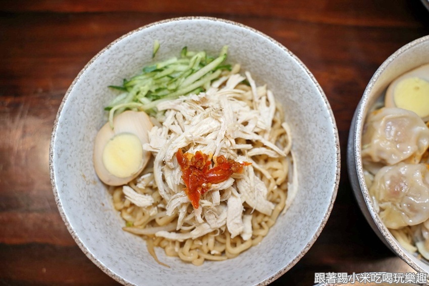 XO醬水餃拌麵(90元)還有配上京醬肉絲跟半顆滷蛋,這樣一碗吃下來,真的是飽到不要不要的。而且這樣一碗只要90元,真的是很超值的拌麵