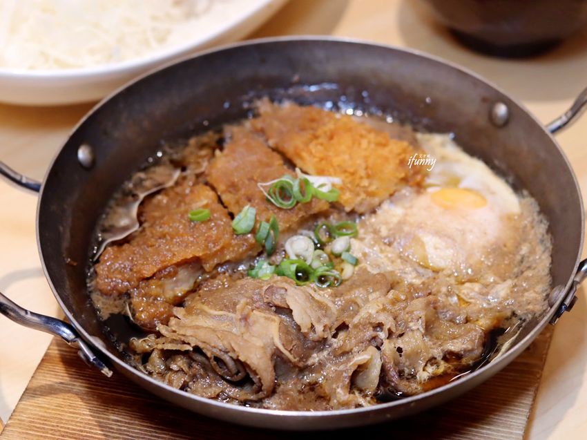 這是可以一次嚐到兩種肉類的餐點。店家為了衛生安全的考量,鍋內的雞蛋是煮全熟的。