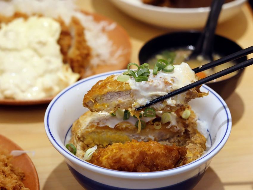 KATSUDON的KATSU就是炸豬排,日文發音(かつ)跟「勝利」的「勝」(かつ)字一樣,所以許多日本人為求好運,會在考試或比賽前吃上一碗勝丼。