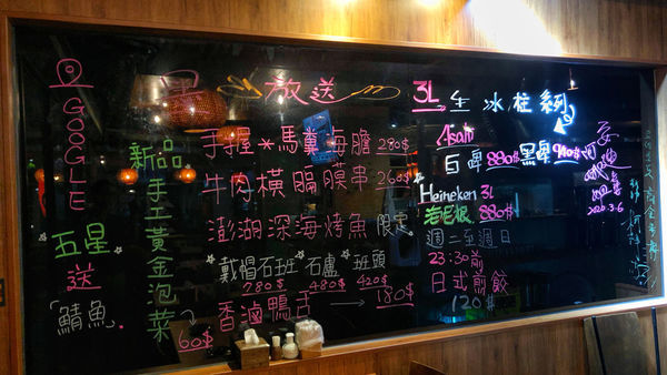 黑板上料理會不定時更換菜色,因為都是最新鮮且特殊的料理,如果有看到心動的,一定要當下馬上點,否則下次來墨居酒屋可能就要飲恨了