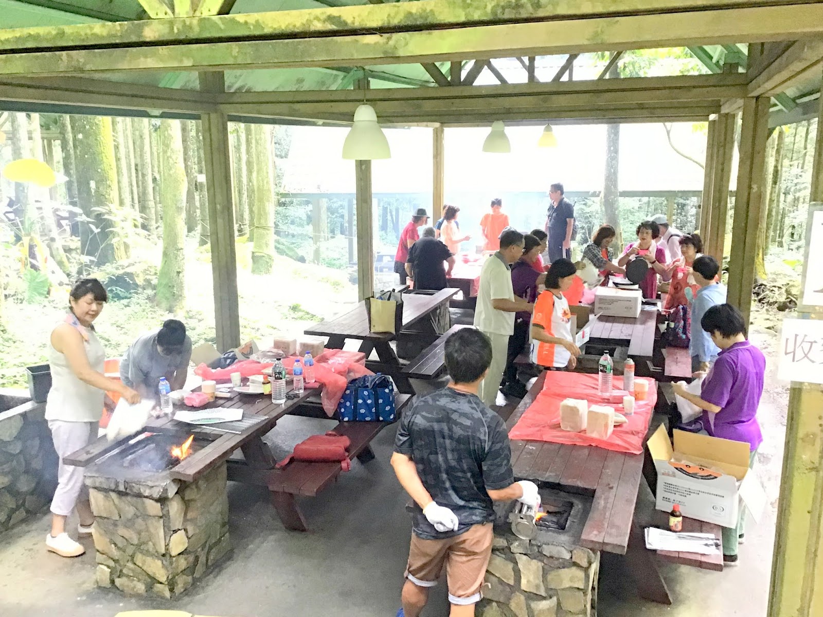烤肉區有六個炤台,待我們健走到站時,大夥兒