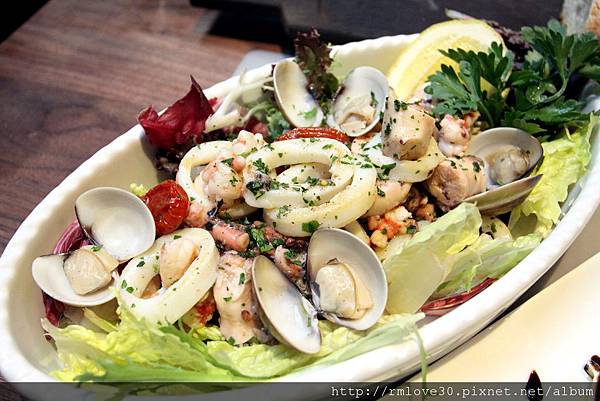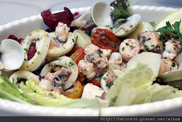 跟熊的沙拉相比,這道更是厲害呀!包括軟絲蝦仁蛤蜊魚跟灌腸類,看起來非常豐富
