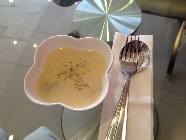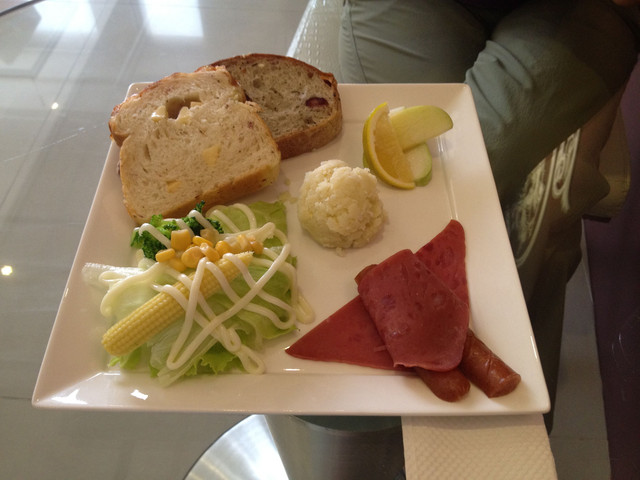 輕食套餐有濃湯、小沙拉、麵包(可續)、火腿、香腸