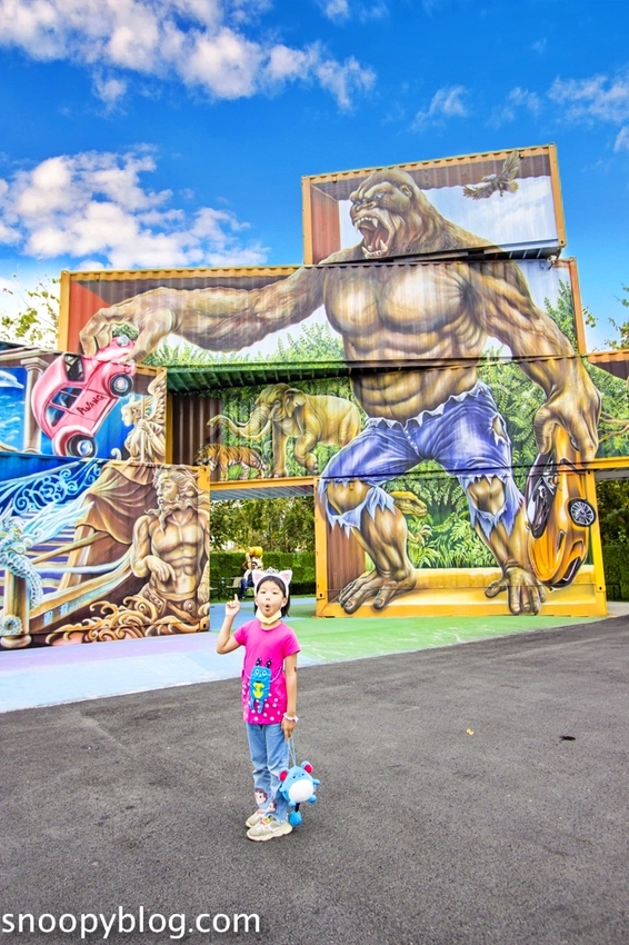 【拾粹院文創藝術園區】最吸睛的就是以貨櫃堆疊並彩繪成3D栩栩如生的大金剛,