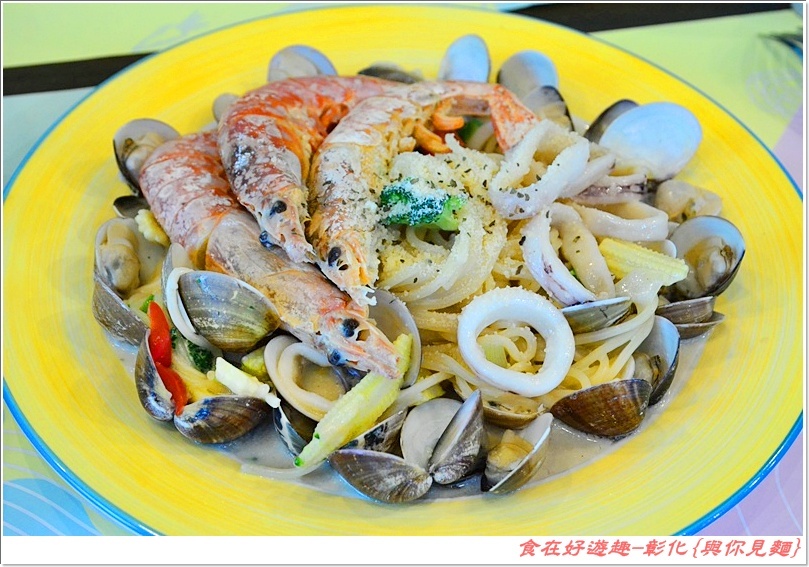 主食的義大利麵則是以天使紅蝦為主角,中卷跟