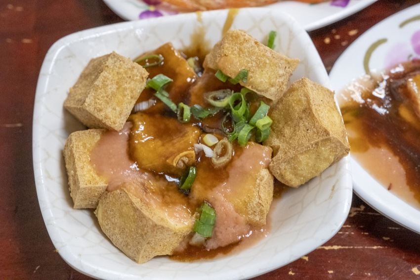 紅燒肉絕對是這間店的第一名,皮薄肉厚,外皮炸得金黃酥脆,咬下去還會喀滋喀滋的超涮嘴!配上特製醬汁和醃製小黃瓜一起吃,鹹香的紅燒肉配上酸爽的小黃瓜超級搭,來吃這盤就值得了!如果說紅燒肉是第一名,那炸豆腐絕對可以和紅燒肉名列前茅,酥脆鬆軟的炸豆腐配上醬油膏和米醬,就是完美的白飯殺手!