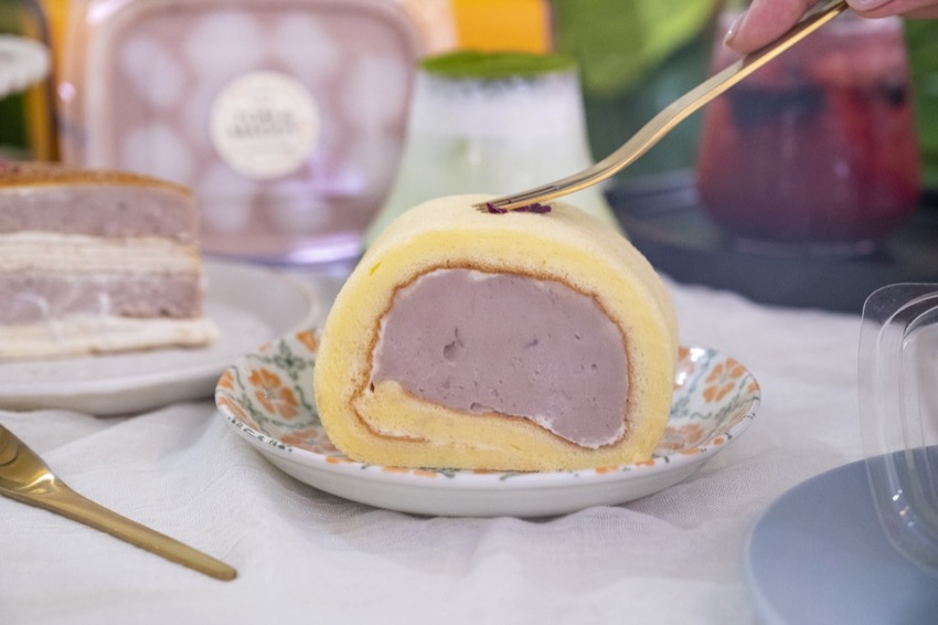 最後這款「重磅芋頭捲」也是個狠角色,整捲芋頭捲有將近一斤的大甲芋泥,配上鬆軟綿密的手工戚風蛋糕,少了鮮奶油也一樣美味好吃,很適合愛吃芋泥而不喜歡吃鮮奶油的朋友!