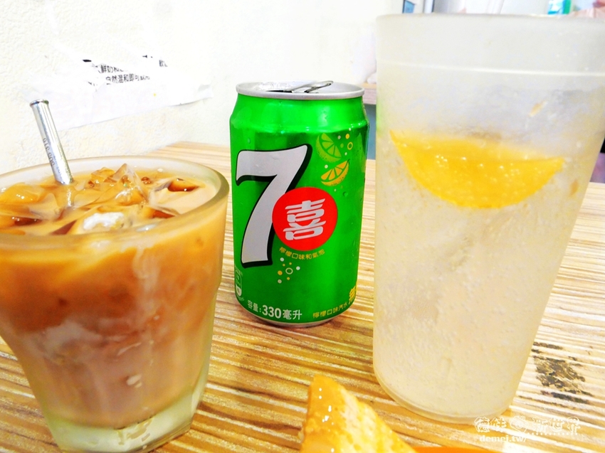 使用青黃與檸檬的雙檸味搭配七喜汽水,用攪拌棒多戳檸檬幾下更夠味,鹹甜適合夏天。