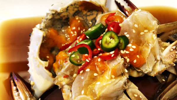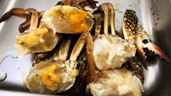 點餐時經過廚房,看到老闆在處理新鮮的螃蟹,老闆說一隻好吃的醬蟹最少要用20多種配料,費時2天的時間醃製才能入味,我們運氣很好,剛好點到今晚最後一份,建議大家要來吃醬蟹之前,要先預約免得撲空了。
