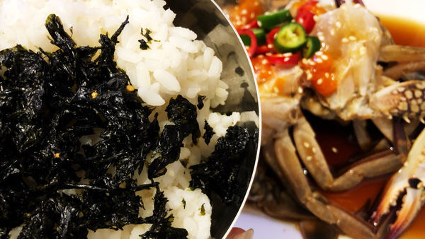 把海苔放在底部加一點飯,在放上蟹黃與蟹肉,最後在上方淋上韓式麻油醬,一口咬下先是吃到海苔與麻油的香氣,再來就是蟹黃的清甜香,是種會讓人上癮的美食。