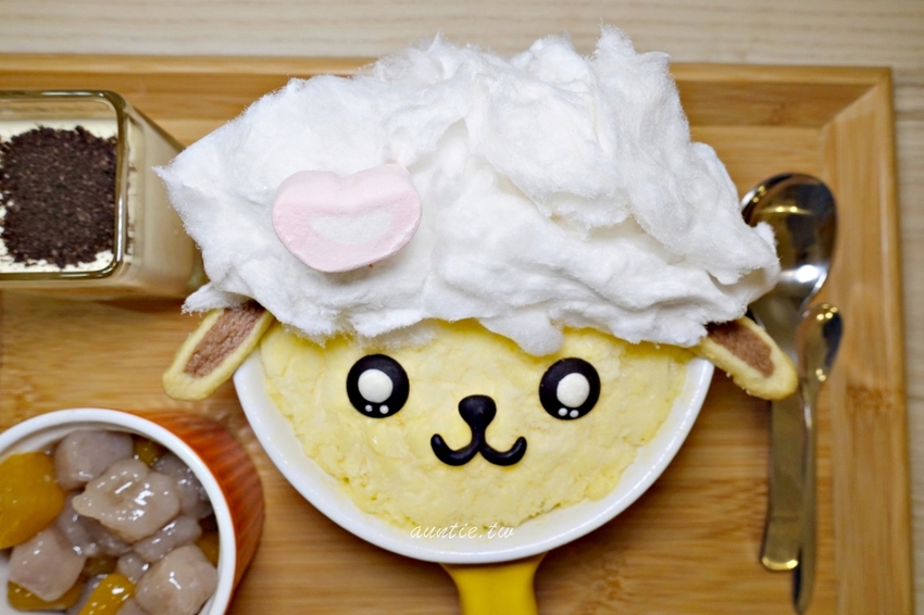 這次點了芒果口味的小綿羊雪花冰,澎澎頭是棉花糖做成的,耳朵是餅乾,真的很有創意耶!