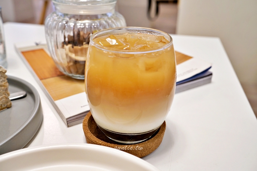 酸甜口味特調飲,加了鳳梨,喝起來有熱帶水果的香氣,雖說是茶飲但是茶味不明顯,不過顏色很美,味道也不錯喔!