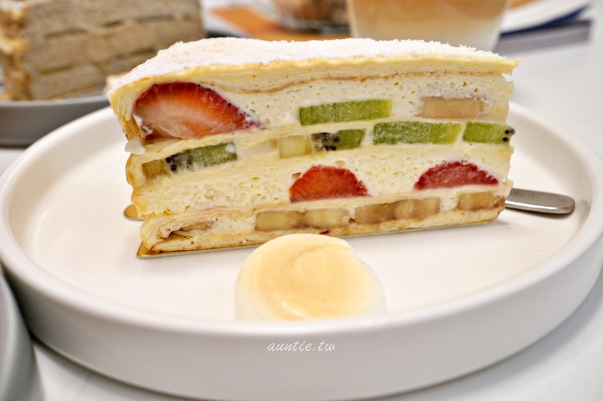看到水果千層就一定會想跟日本的HERBS比較,不得不說,這家口味跟口感真的不輸耶!認真不騙人,除了水果片切得比較大一點,味道口感真的都很不錯。稍甜的千層皮真的好薄好薄,看起來像吸油面紙一樣薄透,口感好細緻,奶油部分也好好吃,不甜不膩超清爽,朋友去日本必吃HERBS都覺得味道蠻像的,很厲害!