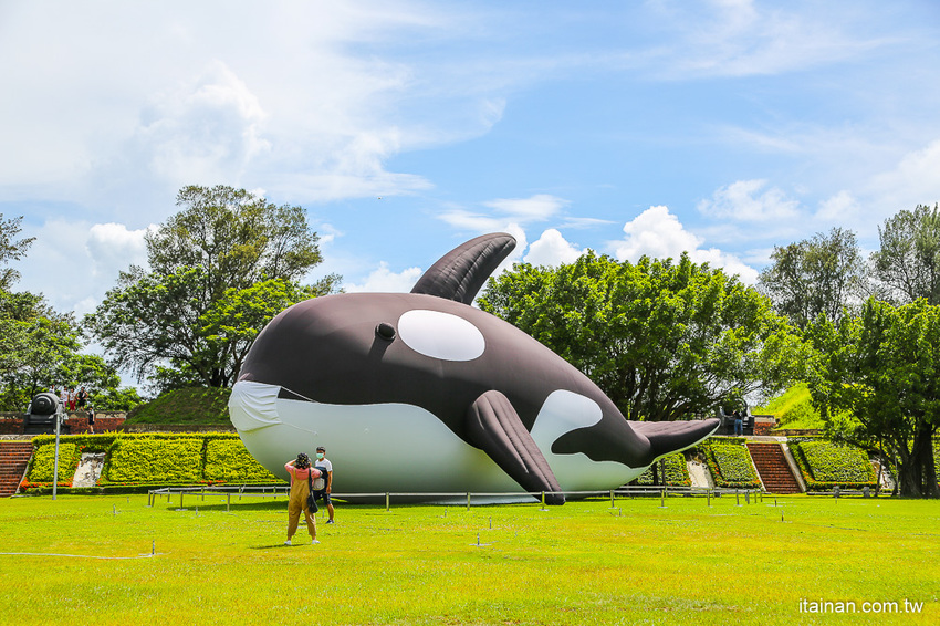來到億載金城除了可以見證歷史古蹟外,7/11前全球最大虎鯨裝置藝術「安平虎鯨ORCA」也在這裡轉開為期14天的隔離檢疫中,近距離拍攝「安平虎鯨ORCA」就趁現在。7/11後「安平虎鯨ORCA」也將在千人的護鯨陪伴下游進安平水景公園,展開為期3個月的台南之旅。