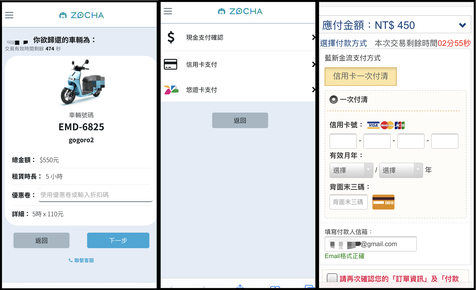 回到「ZOCHA台南店」還車,手續也很方便,只要掃碼進入租還車頁面,按下歸還車,系統會自動計算時間與費用,可使用現金或是信用卡、悠遊卡支付,之後檢查完車輛就完成歸還,非常省時。
