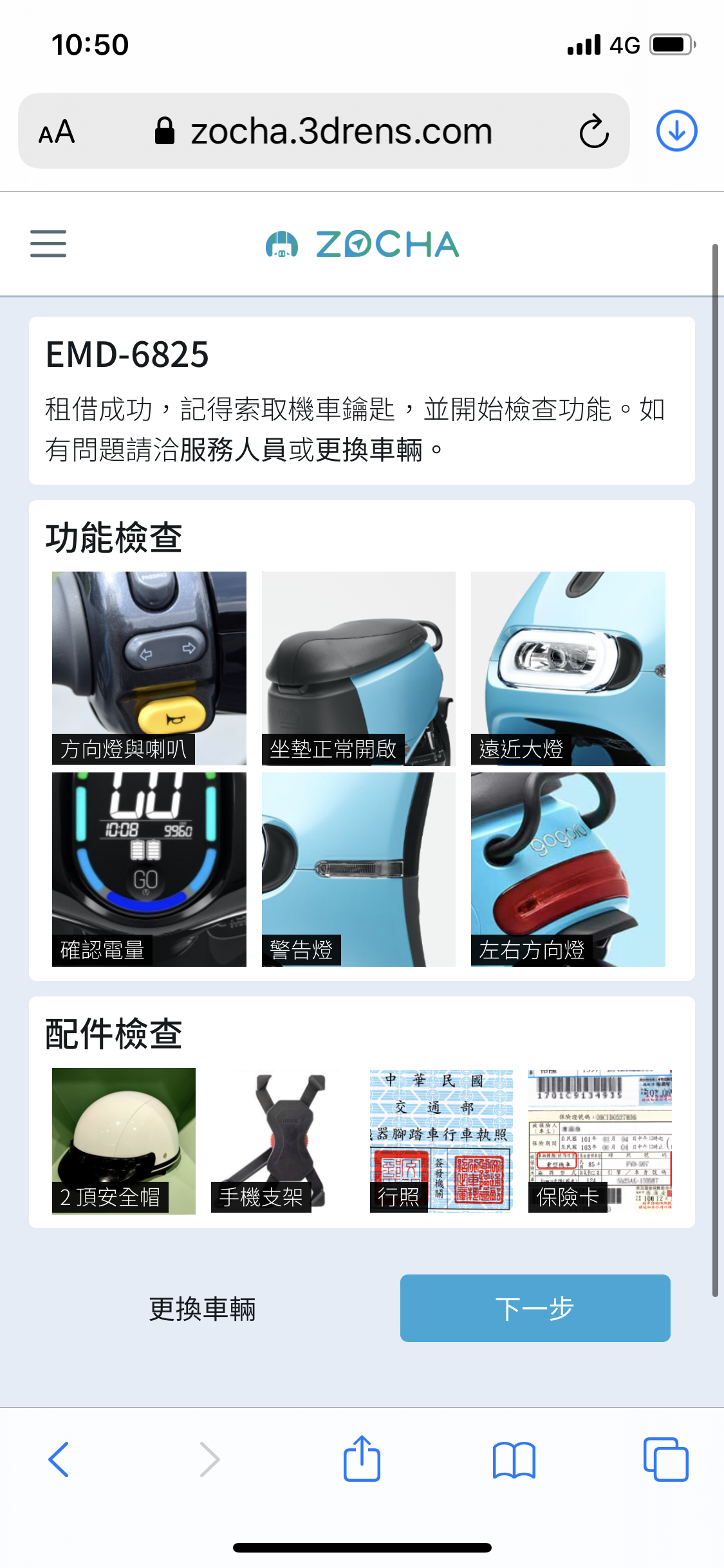租借成功記得檢查車況與配件,若有問題都可以立即更換