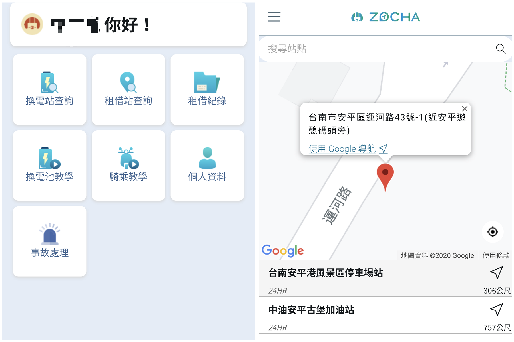 第一次騎乘gogoro有點不習慣,不過很快就上手了,另外最擔心的還是換電池的問題,ZOCHA系統介面直接就有換電站可以查詢,可查詢就近換電站還可以定位導航到換電站,方便又簡單。準備就緒就可以出發囉!!