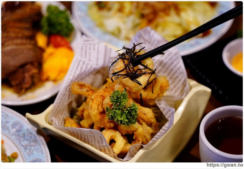 台中三井OUTLET裡有一間超有特色的餐廳,解憂雜貨食堂光聽店名就覺得耐人尋味!甚至站在門口看進去,還真以為是間日式雜貨或伴手禮店,不過這裡販售的可是創意新台菜呦,提供各式單點與2~6人的組合套餐,不管人多人少都很適合來用餐,近期還推出父親節桌菜,平均每人500元就能吃到整桌好料,加上點任何套餐都免服務費還送熱茶無限暢飲,假日生意很好,想來用餐記得先預訂!