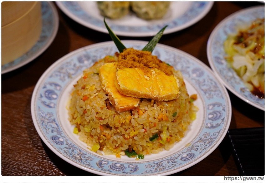 三文魚與叉燒肉切丁拌炒,上頭還搭配了炸鮭魚和鮭魚鬆,粒粒分明的炒飯吃起來香氣十足,咀嚼中還帶著酥鬆微甜的味道,小朋友也會喜歡
