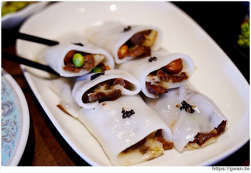 腸粉裡面的內餡是酥炸鷹嘴豆和八寶配料,第一次吃炸鷹嘴豆,咬下去是酥鬆口感,味道很特別