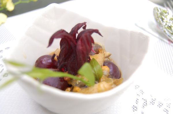 同步使用了新峰農場自家所產的百香果,搭配梅子汁檸檬汁及檸檬乾所做的開胃料理,酸酸甜甜的相當好吃,尤其我又非常喜歡百香果,這個開胃小品我很愛