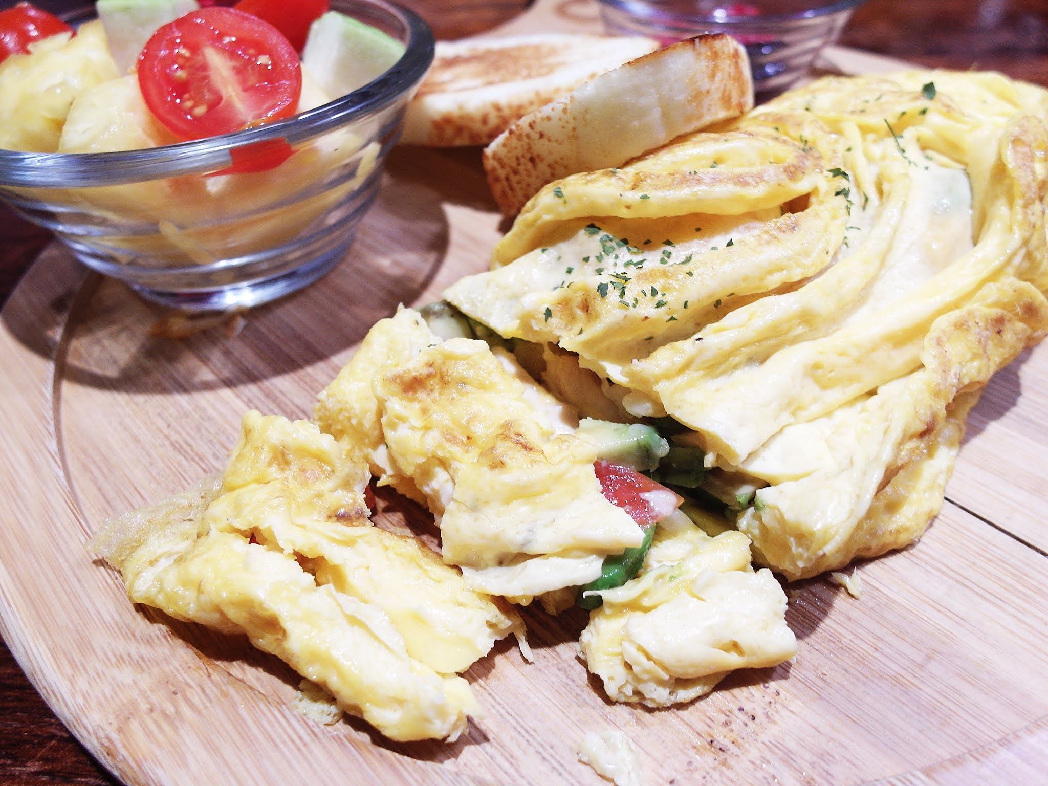 一份酪梨莎莎雞肉起司歐姆蛋