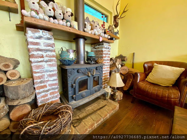 壁爐、小木桌和小小的沙發,營造出一種舒適、