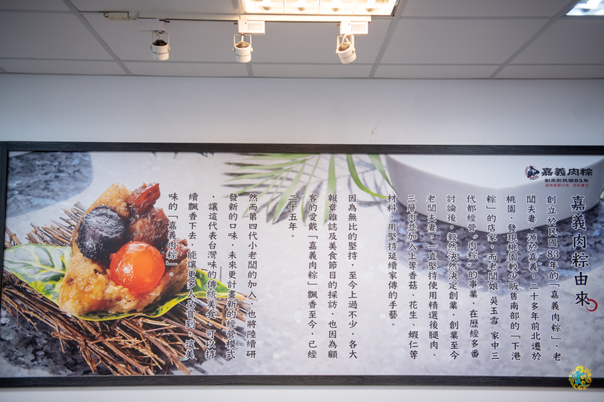 用餐空間的牆上有著嘉義肉粽的由來解說,在持續的堅持下,傳統的古早美味得以持續延續,在第四代創意發想下,將以新口味帶給在地老饕們更多驚喜。
