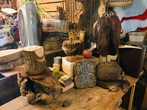 店家選用都是漂流木創作